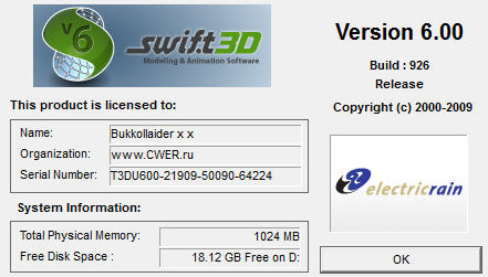 Скачать программу Electric Rain Swift 3D 6.0.926 (46,79 МБ):