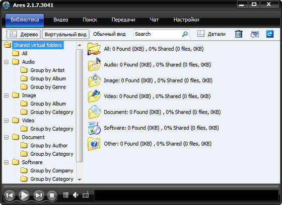 Клиент для загрузки файлов (музыка, видео, фото и т.д.) из пиринговой сети Ares. Данная программа позволяет обмениваться файлами через децентрализированную сеть Ares, проводить поиск всех типов файлов, предоставляемых другими пользователями, и загружать их сразу с нескольких источников. Тут присутствует функциональная библиотека файлов, с удобным автоматическим разделением файлов на категории и подкатегории, встроенный аудио/видео плеер, в котором можно воспроизводить недокаченные файлы и слушать потоковые интернет-радиостанции, а также имеется возможность организовывать свой чат или общаться в одном из доступных каналов. Все основные параметры соединений (используемый порт и прокси-сервер, скорость входящего/исходящего трафика, количество одновременных закачек и т.д.) поддаются настройке. Поддерживаются сменные визуальные оболочки.