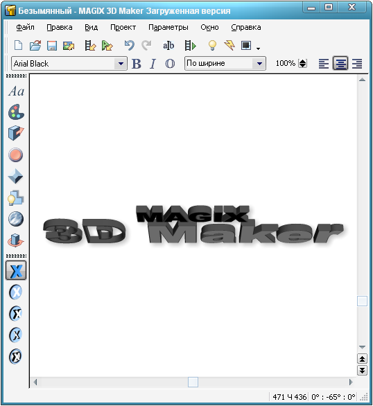 MAGIX 3D Maker - простая программа для создания 3D анимации. Содержит свыше 1000 объектов, поверхностных текстур и шрифтов, плюс около сотни анимированных шаблонов и стилей. Вы можете использовать MAGIX 3D Maker для превращения простого текста и графических шаблонов в профессиональные логотипы, заголовки и кнопки, с помощью которых можно украсить ваши веб-сайты, электронные письма и презентации! Кроме этого, в программе имеется возможность сохранять анимацию в AVI файл, что очень удобно для создания трёхмерных текстов в видео.
