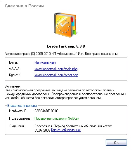 Скачать программу LeaderTask 6.9.8.0 (7,44 МБ):
