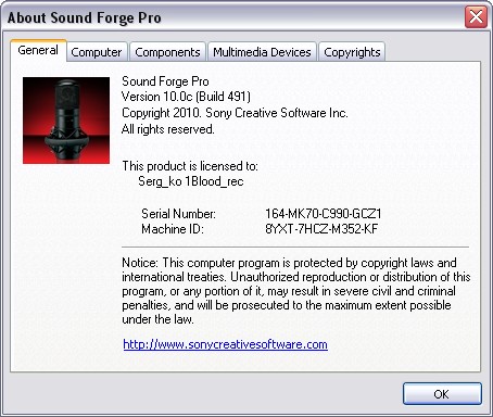 Скачать программу Sony Sound Forge Pro 10.0c Build 491 (145,94 МБ):