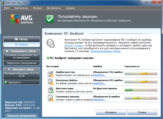 Скачать программу AVG Anti-Virus Professional Edition 2011 v10.0.1170 x86 (140,49 МБ):
