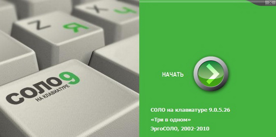 «СОЛО на клавиатуре» — это обучающая программа, позволяющая в короткий срок научиться быстро печатать на клавиатуре компьютера. Автор курса машинописи — известный психолог и журналист, преподаватель факультета журналистики МГУ Владимир Владимирович Шахиджанян. Нескольким сотням тысяч пользователей компьютера хорошо известна программа «СОЛО на клавиатуре», по которой многие научились набирать слепым десятипальцевым методом. В последней, девятой, версии изменён интерфейс, стал увлекательнее подход к обучению, добавлены игры и тесты — всё сделано для того, чтобы каждый проходящий «СОЛО» за относительно короткий срок овладевал слепым десятипальцевым методом и в значительной степени развивал лучшие черты своего характера: целеустремлённость, выносливость, настойчивость, выдержку. Версия программы «3 в 1» включает в себя три курса: «Русский курс», «Английский курс» и «Укрощение цифр».