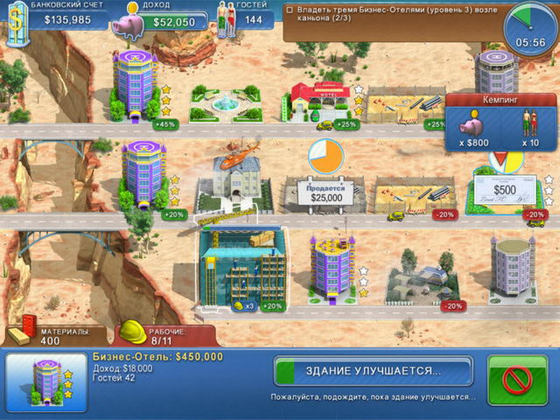 Строительная бизнес-игра в лучших традициях Построй-ки. В этом симуляторе вам предстоит занять пост директора по развитию в компании Golden и непосредственно руководить строительством новых отелей и кафе. Покажите всем конкурентам, что такое настоящий бизнес, и станьте отельным магнатом!