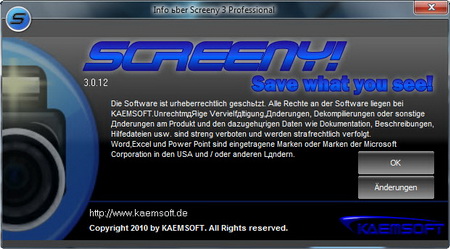 Screeny 3 Professional, the software for individuals, is a very powerful tool for professional desktop screenshots and videos, which you can hold everything from your screen as an image or video. Screeny 3 is the screenshot program for professional screen shots, even from DirectX games, with innovative and comprehensive recording and transmission facilities. Send your recording directly from Screeny by e-mail to your colleagues, or to an FTP server or save your recording directly from a PDF file with Screeny 3 thats no problem .