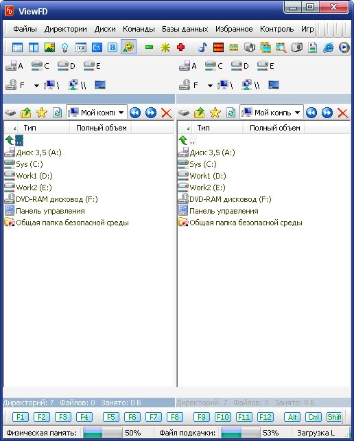 ViewFD - очень легкий, компактный файловый менеджер, по возможностям вполне сравнимый с Total Commander, но при этом бесплатный. ViewFD имеет встроенные средства для промотра файлов, понимает распространенные текстовые форматы, среди которых есть RTF. Присутствует также просмотрщик изображений, который обладает возможностью их редактирования.