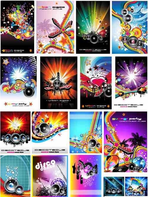 Скачать векторный клипарт Disco Flyers & Disco Ball (71,54 МБ):