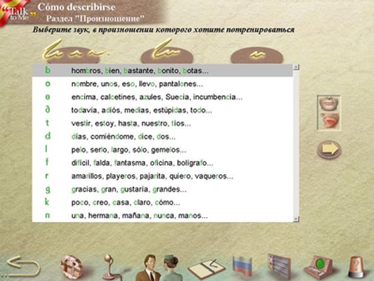 Talk to Me – интерактивный компьютерный курс для изучения испанского языка. Новейшие мультимедийные технологии помогают быстро и эффективно освоить восприятие устной речи, поставить правильное произношение и обучить беглому говорению. Занятия с Talk to Me развивают все речевые навыки и умения и будут интересны людям разного возраста.