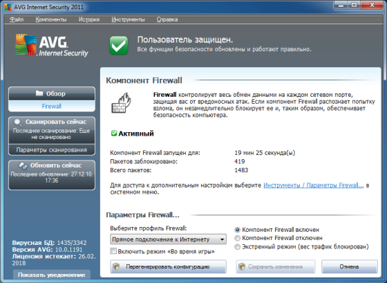 6. Контроль за сетевыми соединениями. При помощи встроенного файрволла AVG проверяет все входящие и исходящие запросы на соединение с компьютером, предотвращает сетевые атаки на компьютер, и сетевую активность программ-троянов.