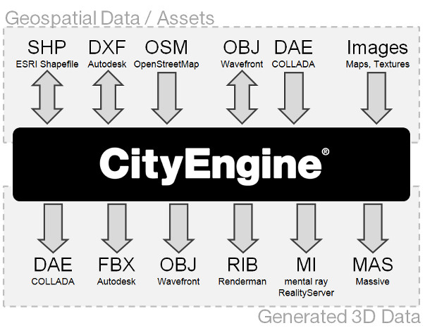Программа дает возможность создавать трехмерные города в автоматическом режиме с очень высокой скоростью. CityEngine может использоваться в таких областях, как создание игр, фильмов и телесериалов, в архитектурной визуализации и 3D-приложениях для интернета. В CityEngine 2010 представлен новый визуальный редактор для создания набросков фасадов зданий, появилась возможность интерактивного изменения всех уровней города, а также появился визуальный редактор Rule Editor для новичков, в котором легко заниматься процедурным моделированием.