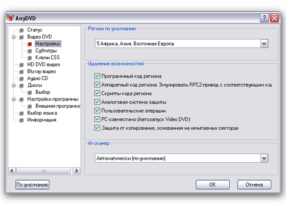 • Снятие защиты шифрования (CSS) и регионального кода (RPC) с DVD дисков.