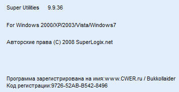Super Utilities - сборник полезных утилит, при помощи которых вы сможете наладить, очистить и ускорить работу своей операционной системы. Пакет утилит служит для ежедневного использования и позволяет производить поиск и удаление ненужных файлов, очистку и оптимизацию системного реестра, имеет менеджер автозагрузки, а также позволяет производить защиту папок, резервное копирование, анализ папок. Также программа имеет средство для полного удаления ставших ненужными программ, менеджер процессов, менеджер конфиденциальности Internet Explorer и многое другое. В программе имеется простой пользовательский интерфейс с мультиязычной поддержкой, а также имеется поддержка смены скина интерфейса. Работает на платформах Windows XP/Vista/7.