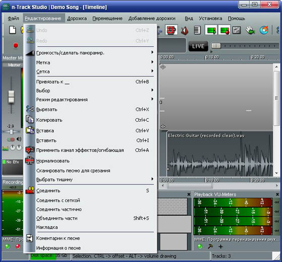 n-Track Studio поможет вам превратить ваш компьютер в домашнюю звукозаписывающую студию. Программа представляет полнофункциональную многотрековую аудиостудию, позволяющую в домашних условиях создавать свои собственные профессиональные музыкальные композиции. Вы сможете записывать и воспроизводить огромное число аудио и MIDI треков одновременно, накладывать всевозможные эффекты на каждый трек, работать с каналами и т.д. Кроме стандартных эффектов (Reverb, Compression, EQ, Echo, Auto volume, Pitch Shift и Chorus), программа позволяет подключать DirectX и VST 2.0 плагины от сторонних разработчиков. N-Track Studios может работать с любыми стандартными или многоканальными 16 и 24-битными звуковыми картами.