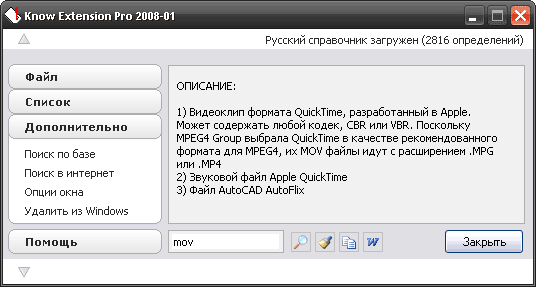 Назначение программы - определять тип файлов по их расширениям. Может быть полезна для любопытных начинающих пользователей, которые хотят узнать назначение того или иного файла, а также и для продвинутых пользователей, для создания собственной базы знаний по расширениям файлов, так как программа позволяет добавлять в базу новые данные.