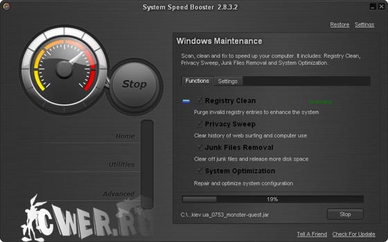 System Speed Booster is extremely easy to install and to operate. There is no requirement for any register or any identity information of users. The navigation gives you a clear way to master all its features, including the scanning, curing, and other utilities. As an advanced registry cleaner, System Speed Booster can perfectly cope with the registry clean, privacy sweep, junk files removal and system optimization at a time. Specifically, System Speed Booster focuses on the scanning of the junked registry entries, individual online histories, obsolete harmful files, and removing of hard drive trashes, repairing of system errors. In this way, System Speed Booster is capable to optimize your computer and keep it at the peak performance, as well as to protect your personal information.