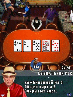 Это игра подойдёт и для профессионалов и для новичков. Узнайте все трюки в покере благодаря замечательному режиму обучения. Посетите 8 самых больших покер клубов по всему миру. Размеры экранов: 240х320, 320х240, 352х416.