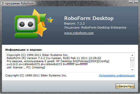 Скачать программу AI Roboform Enterprise 7.2.2 Final (6,04 МБ):
