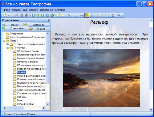 Очередной компакт-диск научно-популярной серии "Все на свете" посвящен географии. Удобно разделенный на две части, электронный справочник расскажет вам вначале все об устройстве Земли. О зарождении нашей родной планеты, ее материках и литосфере, об ее бесчисленных водоемах - гидросфере, об атмосфере и биосфере и, - как правильно составлять и читать географические карты.
