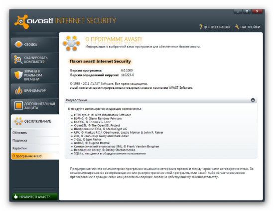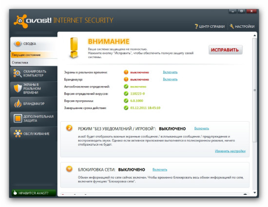 Скачать программу Avast! Internet Security 6.0.1000 Final (93 МБ):