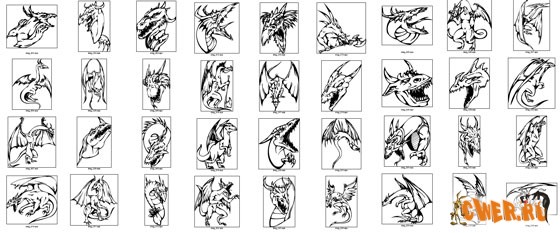 120 драконов в 5 векторных форматах (AI, EPS, SWF, CDR, DXF)