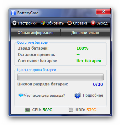 Кроме этого, BatteryCare производит мониторинг температур процессора и жесткого диска и выводит информацию об этом через иконку в системном лотке.