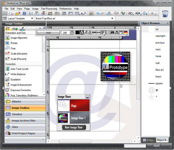 Разработчиком была предусмотрена возможность свободного размещения текстовых и графических элементов в рамках странички, а также реализовано наличие интегрированного графического редактора, при помощи которого можно работать с растровыми и векторными изображениями, применяя к ним имеющиеся фильтры и эффекты. Более того, присутствует богатая библиотека готовых шаблонов, которые успешно могут быть использованы в качестве основы будущего проекта.