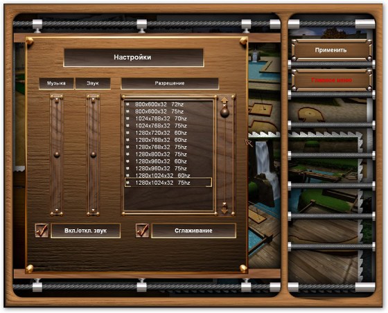 Скачать игру "Мини-гольф чемпионат " (18,87 МБ):