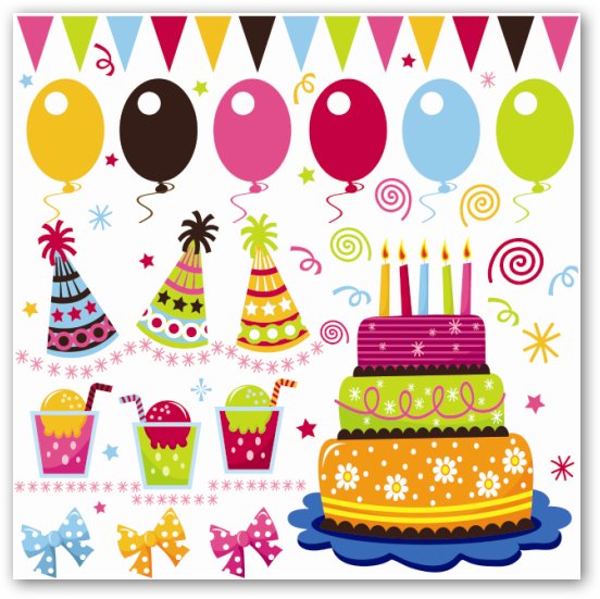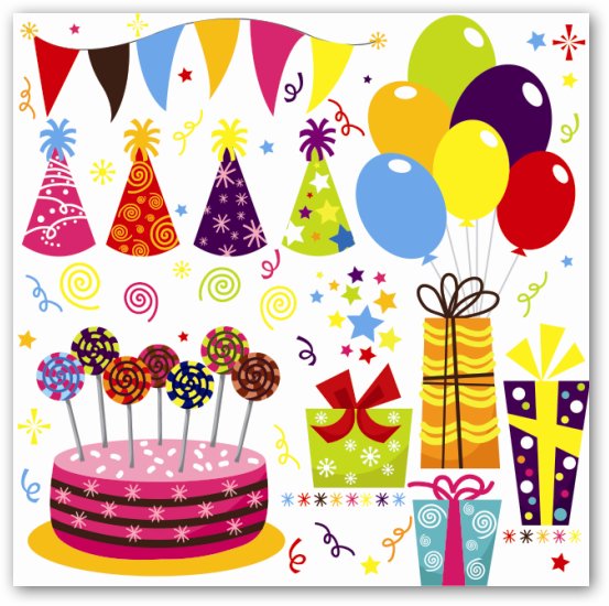 Скачать праздничный векторный клипарт Birthday Vector Pack (15,87 МБ):