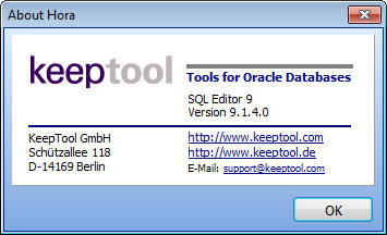 KeepTool собрала вместе три инструмента производительности Oracle, каждый из которых предназначен для определенной цели и доступен по отдельности. KeepTool cостоит из трех компонентов: Hora (среда администрирования и разработки), ER-Diagrammer (инструмент для разработчика) и PL/SQL-Debugger (отладчик). Программа имеет полный базовый уровень для построения всей необходимой функциональности, включая пошаговую отладку. Каждый из трех инструментов (Hora, ER Diagrammer и PL/SQL Debugger) также предназначен таким образом, чтобы можно было работать с двумя другими инструментами совместно.
