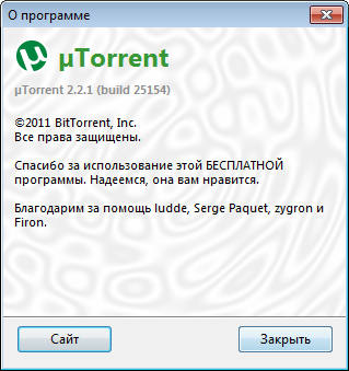 Скачать программу µTorrent 2.2.1 Build 25154 Stable (1,15 МБ):
