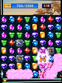 Diamond Twister возвращается с лучшими трюками прошлой игры: замена камней и подбор цветов в десяти уникальных игровых механизмах плюс новые бонусы и эффекты. Пройди через 8 потрясающих элитных локаций и повстречай новых интересных персонажей на пути. Перед тобой новые задачи, например затемняющий туман и препятствия, влияющие на падение камней. К счастью, ты можешь использовать Замораживатель времени, Бомбы, Твистеры и так далее,чтоб помочь себе очистить уровень в рекордное время! А благодаря новому, простому в использовании, тач-управлению, вы получите ни с чем не сравнимое удовольствие. Размеры экранов: 240×320, 320×240, 352×416.