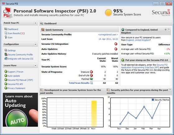 Secunia Personal Software Inspector гарантирует своевременное обновление до полусотни наиболее популярных приложений, развернутых на 2 миллионах пользовательских компьютеров. В этот список входят программные продукты от Microsoft, Adobe Systems, Apple и других производителей, которые могут сделать компьютер уязвимым для хакерских атак. Многие из этих программ оснащены собственными средствами автоматической загрузки обновлений. Однако из-за отсутствия единого механизма, сообщающего о доступности новых патчей, клиентские системы не могут считаться надежно защищенными.