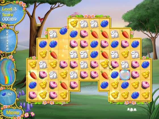 Весна в воздухе! Помогите Пасхальному Кролику зажечь волшебную радугу, чтобы разрушить чары Зимы. Пушистые птенцы, резвящиеся ягнята, бодрые кролики - будут радовать Вас в этой милой игре жанра match-3.