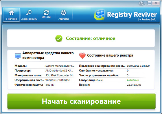 Registry Reviver использует самые передовые технологии доступные для анализа ошибок ПК и ускоряет работу компьютера. Программа обнаруживает и удаляет все неиспользуемые записи в реестре компьютера после сбоя программного обеспечения, установки драйверов, установок с ошибками / деинсталляций и оптимизирует работу Windows.