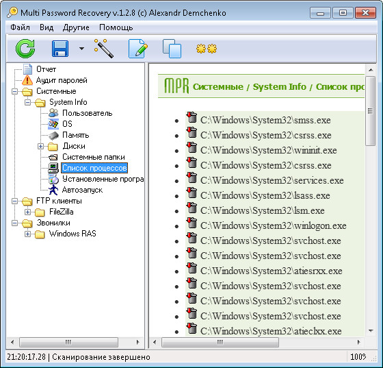 Multi Password Recovery - многофункциональное решение для Windows по расшифровке и тестировании паролей на стойкость. MPR автоматически находит и мгновенно расшифровывает пароли из более чем 100 популярных программ (FTP, E-mail клиенты, Интернет пейджеры, Браузеры и пр.), при этом, не требуя вмешательства пользователя. Кроме расшифровки, показывает пароли под звездочками, позволяет скопировать SAM файл, удалить сохраненные пароли, сгенерировать новый пароль, сохранить отчеты на жесткий диск.