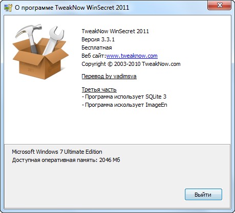 TweakNow WinSecret 2011 3.3.1 + Rus