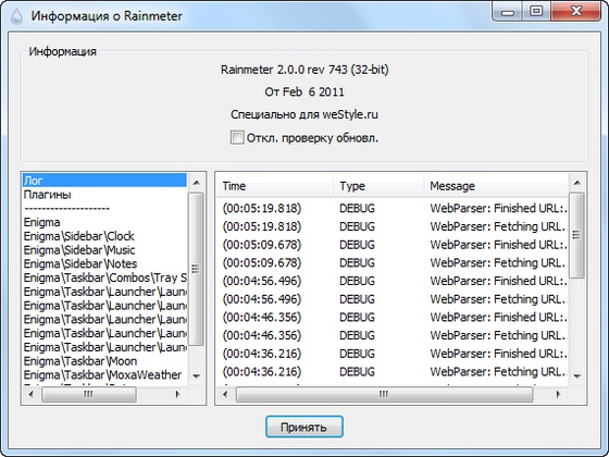 Скачать программу Rainmeter 2.0 Final + Rus (3,60 МБ):