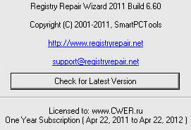 Registry Repair Wizard 2011 Build 6.60