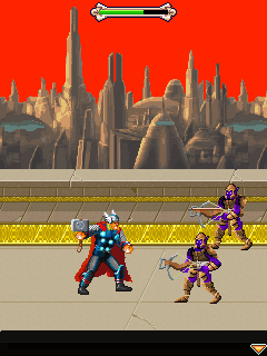 Провалился хитрый план Локи по захвату Асгарда. Теперь вам предстоит отбить нападение Малекита, выступив на стороне могучего Тора, который вооружён молотом Мьёлниром. Исследуйте 3 совершенно различных мира и сражайся со злодеями - Чаровницей, Малекитом, Курсом и Уликом. Вас ждут 13 уровней, и по мере игры вы будете изучать разные боевые приёмы. В игре есть также арена с режимом выживания, на которой Тору необходимо будет выстоять против множества врагов. Размеры экранов: 176х208, 176х220, 240х320, 240х432, 360х640, 480х800.