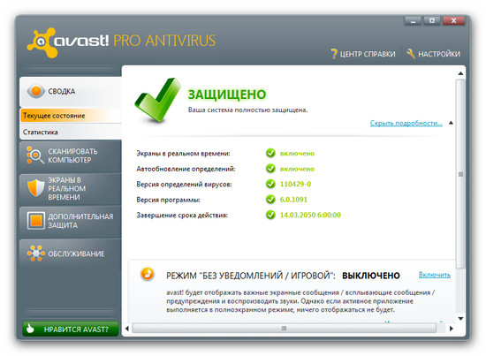 Скачать программу Avast! Pro Antivirus 6.0.1091 RePack (92 МБ):