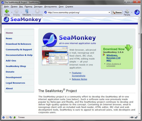 Скачать программу Portable Mozilla SeaMonkey 2.0.14 Final (11,35 МБ):