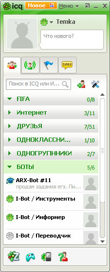 Голос, Видео, SMS и текстовые сообщения – все эти возможности теперь одинаково доступны в новом ICQ. От множества альтернативных клиентов для подключения к ICQ-сервисам оригинал отличается ярким дизайном, играми, аватарами, визитными карточками, множеством украшательств и т. п. Программа выполнена в стиле американских тинэйджеров, что, в общем-то, может быть, придется по душе определенной категории пользователей.