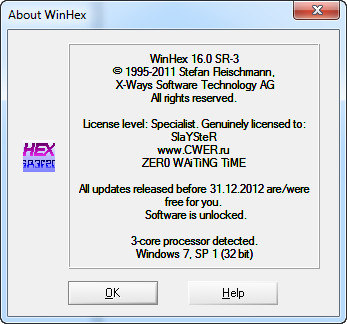 Скачать программу WinHex 16.0 SR-3 (1,91 МБ):