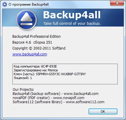 Скачать программу Backup4all Professional 4.6 Build 251 (19,19 МБ):