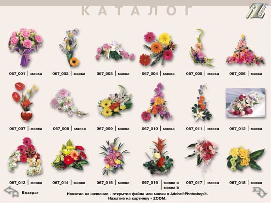 Незаменимый клипарт для профессионального дизайнера содержит высококачественные фотографии букетов цветов в формате JPG и альфа каналы к ним в файлах PSD. Также в архив включен PDF-файл с предпросмотрами и возможностью загружать непосредственно в Photoshop как фотографии букетов, так и маски к ним.