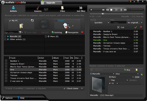 Tunebite Platinum - программа, которая, позволяет записывать музыкальные дорожки, аудио-книги, видео клипы и фильмы (более 50 форматов) защищенных от копирования (без потери качества), обходя легально защиту DRM. Одновременно конвертирует в 15 аудио и видеоформаты, делая их удобными для использования в ваших мобильных телефонах, MP3 и MP4 плеерах, и Apple iPod, PSPs, КПК, мультимедийных проигрывателях, Windows Media Player и PC медиа центрах.