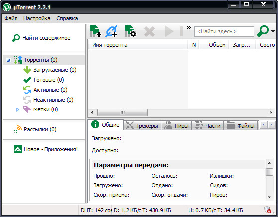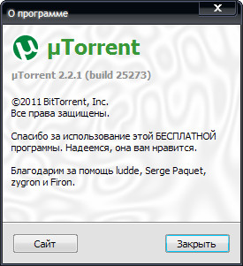 Скачать программу µTorrent 2.2.1 Build 25273 Stable (1,1 МБ):