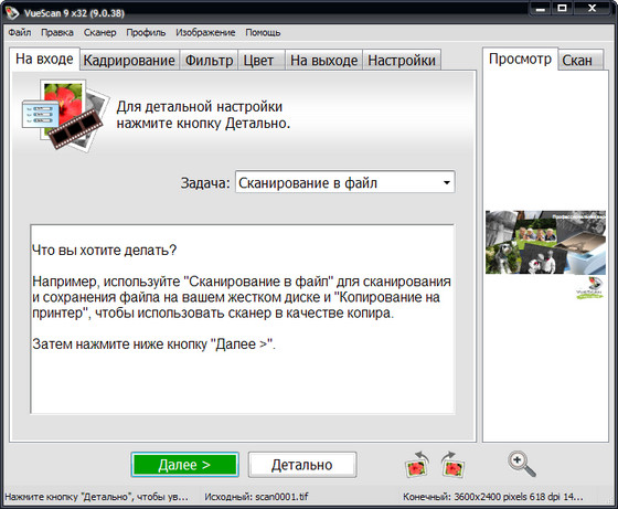 VueScan - программа для работы со сканерами HP, Minolta, Nikon, Polaroid, Epson, Canon и другими. Может работать с внутренней глубиной цвета. VueScan поддерживает автоматическую и ручную настройку большинства параметров и пакетный режим сканирования. Поддерживается более 500 моделей сканеров с определенным перевесом в сторону слайд-сканеров — Nikon, Minolta, Polaroid, Microtek, Epson. Предусмотрено автоматическое удаление дефектов изображения за счет канала инфракрасного сканирования и многопроходное сканирование с последующим усреднением результата — для подавления собственных шумов сканера. Имеются фильтры подавления зерна, нерезкого маскирования и удаления паразитного оттенка оригинала.