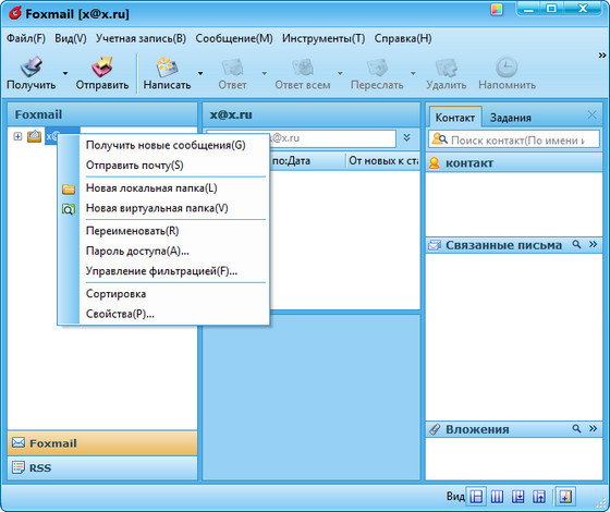 Foxmail - замечательный бесплатный почтовый клиент, работает по протоколам POP3, SMTP и IMAP, имеет очень удобный редактор шаблонов писем, фильтры сортировки почты, развитый антиспам, умеет получать новостные ленты RSS, выгружать и загружать списки RSS-лент в формате OPML, просматривать заголовки писем на сервере, вставлять смайлы в письма, и прочее.