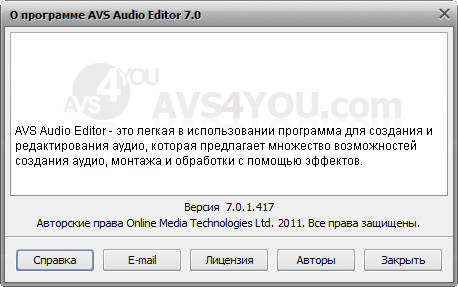 Скачать программу AVS Audio Editor 7.0.1.417 (41,44 МБ):